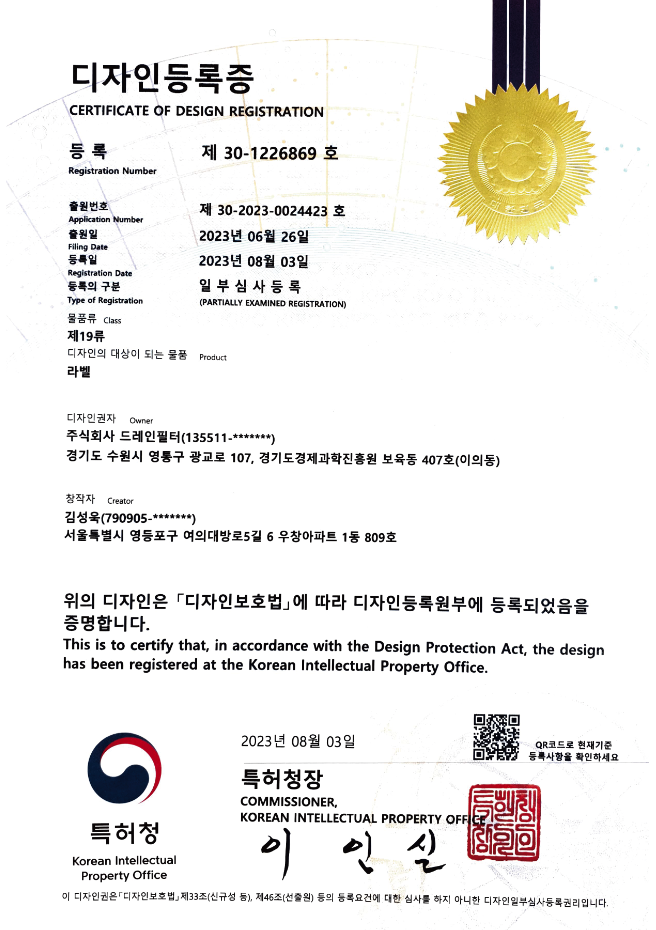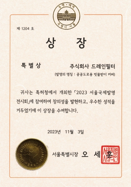 그레이팅 필터는 기본적으로 제품이 밝은 하늘색과 노란색을 베이스로 하여 눈에 잘 들어오며 지자체 로고나 기부한 기업 로고 등을 새길 수도 있어 홍보수단으로서도 매우 뛰어난 성능을 보입니다.