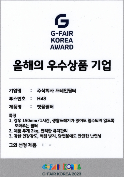 추가 장벽을 구현하여 필터 전체가 이물질로 덮여도 안정적으로 배수가 가능합니다.